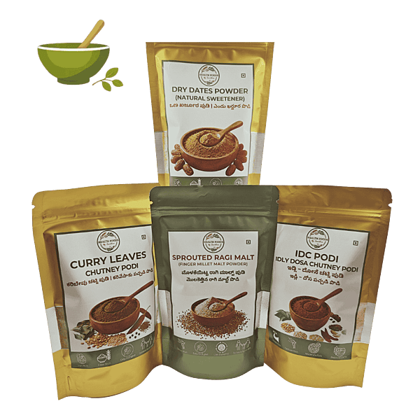 మిల్లెట్ లడ్డూలు, స్ప్రౌటెడ్ హెల్త్ మిక్స్లు, సంప్రదాయ పొడులు, సహజ స్నాక్స్ మరియు పోషక కాంబోలు వంటి ఇంటి తయారీ ఆరోగ్యకరమైన ఆహారాలను ఆన్లైన్లో కొనండి. మిల్లెట్లు, డ్రై ఫ్రూట్స్ మరియు సంప్రదాయ పద్ధతులతో చిన్న బ్యాచ్లలో తయారు చేయబడినవి.