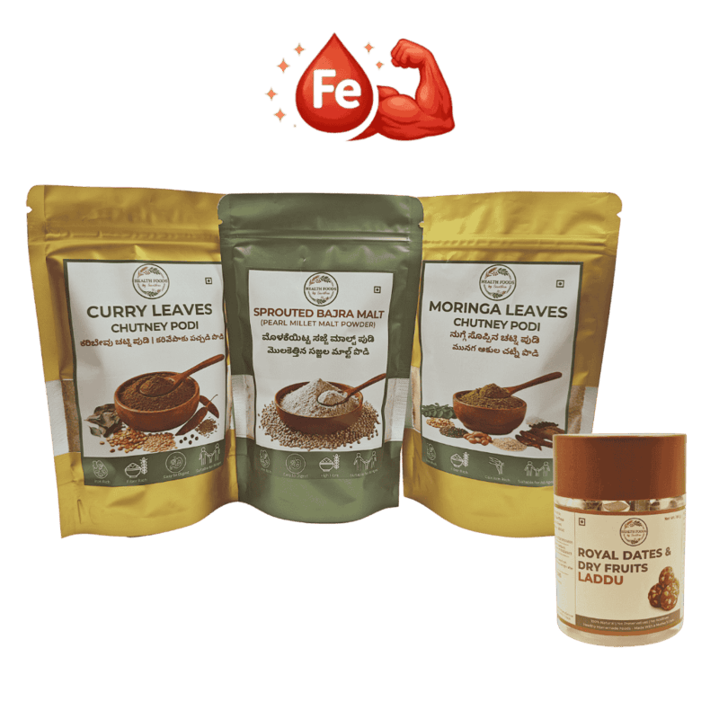 (ಒಳಗೊಂಡಿದೆ: ಕರಿಬೇವು ಚಟ್ನಿ ಪುಡಿ - 150 ಗ್ರಾ, ನುಗ್ಗೆ ಸೊಪ್ಪಿನ ಚಟ್ನಿ ಪುಡಿ - 150 ಗ್ರಾ, ಅಂಕುರಿಸಿ ತಯಾರಿಸಿದ ಸಜ್ಜೆ ಮಾಲ್ಟ್ ಪುಡಿ - 250 ಗ್ರಾ, ರಾಯಲ್ ಖರ್ಜೂರ ಮತ್ತು ಡ್ರೈ ಫ್ರೂಟ್ಸ್ ಲಡ್ಡು - 180 ಗ್ರಾ)
